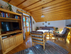 Die Ferienwohnung wurde im Jahr 1996 erbaut. Sie befindet sich im ersten Stock oberhalb der Garagen.